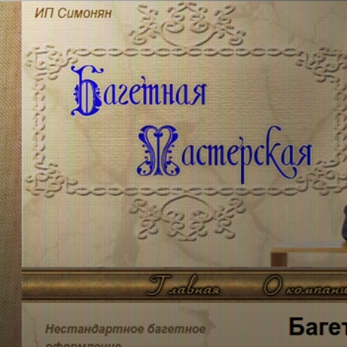 Как каждой картине необходима красивая рама, так и мастерской, которая эти рамы изготавливает, необходим красивый сайт. При заказе сайта для багетной мастерской её владелец попросил разместить на ресурсе не только информацию о выпускаемой продукции, но и художественные произведения его жены – Лолиты Серебрянской-Симонян.