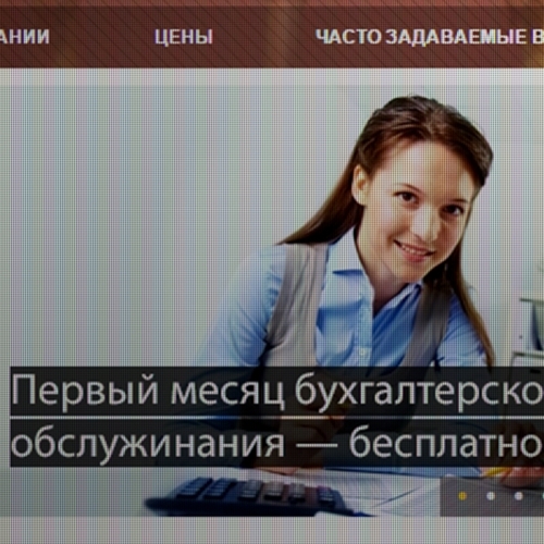 Так как организация предлагает клиентам юридические и бухгалтерские услуги, необходимо было отразить это направление в дизайне. В контексте данного сайта оптимальным решением стал слайдер в котором плавно чередуются шесть слайдов, с запечатленными на них качественными фотографиями. На фотографиях — деловые ситуации из сферы бухгалтерии и юрисдикции.